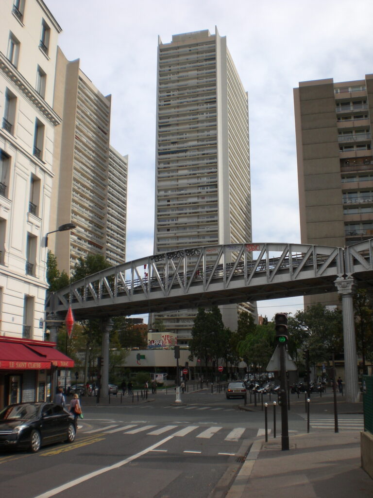 D’autant que ces trois horreurs, de forme légèrement pyramidale ce qui leur a valu les noms dérisoire de Cheops, Khephren et Mykerinos, sont particulièrement dégradées : tags, fissures, urine, etc. L’évolution classique… Cette intervention isolée faisait partie d’une des plus abominables opérations d’urbanisme table rase de l’histoire de Paris, le programme « Paris 13 », qui nous a laissé entre autre le saccage total de la Place d’Italie, devenue, techniquement sinon sociologiquement, une cité « grand ensemble », la forêt de ruches Masséna, dont même un promoteur chinois ne voudrait pas, et le fin-fond du fin-fond, les « Olympiades », l’un des pires groupement de clapiers de l’Ile de France.