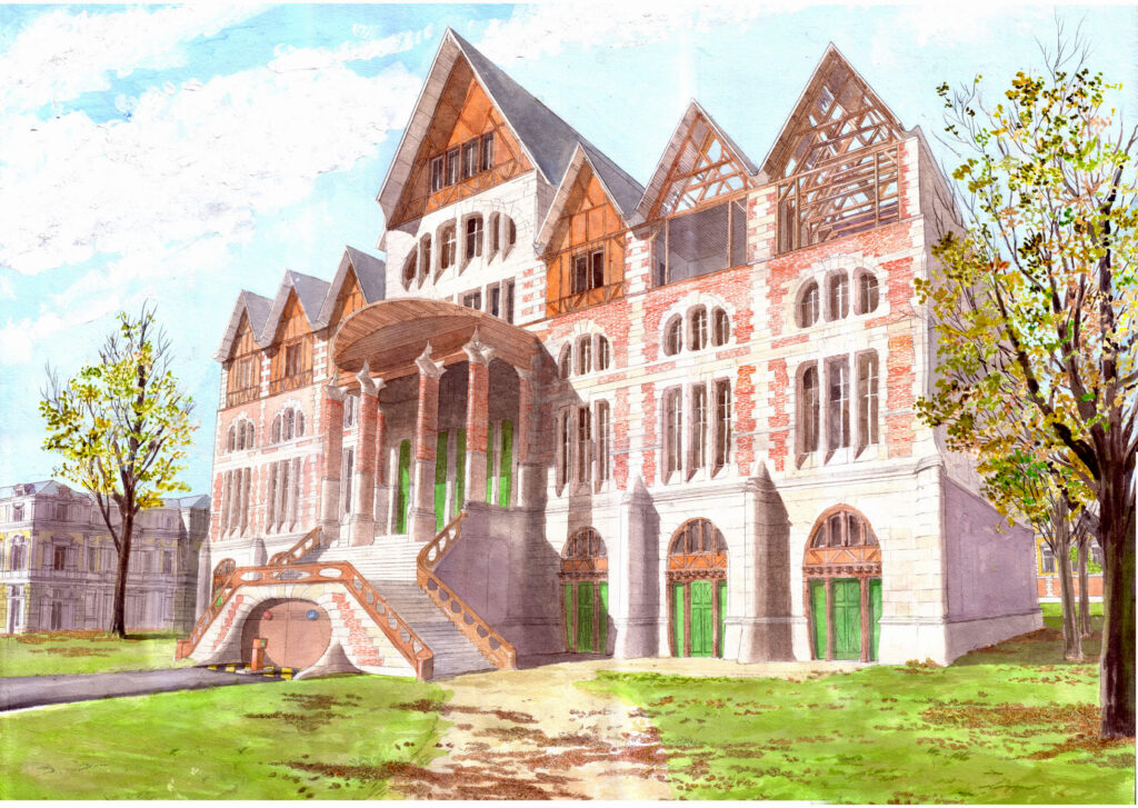 Le respect de l’environnement implique une réforme, non seulement de la structure des bâtiments (HQE) afin de garantir une empreinte écologique minimum du fait de leur exploitation, mais également de toute la chaîne de production des matériaux de construction, non seulement en amont mais également en aval, les matériaux industriels comme le béton armé n’étant ni recyclables en cas de démolition, ni réparable en cas de dégradation (cancer du béton) les maçonneries béton formant un bloc. Entièrement construit en matériaux traditionnels, ce palais de justice combine deux types de maçonneries (pierre de taille pour le soubassement et les chaînages, brique pour les étages 2 et 3) avec un mode de construction traditionnel et économique: hourdage de torchis (chanvre, par exemple) et charpentes en bois (colombages). Prix estimé de la construction: 1500€ le m2. Selon Eliet&Lehman, une agence très sérieuse, il est possible de construire en pierre de taille massive pour 1070€ le m2.