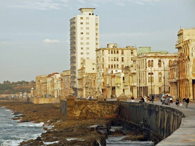La Havane est, faute d’entretien, dans un état de décripitude avancée. Mais que voit-on, sur cette photo ? Un instantané saisissant de la spécultion immobilière et du bétonnage « à l’espagnole » qui aurait continué si le développement de la ville n’avait été stoppé net. Ce grand immeuble fin années 50 défigure un ensemble de maisons qui seraient charmantes si on les retapait. Il est le premier d’une série d’autres qui n’auraient pas manqué de sortir de terre. Le saccage commençait tout juste lorsque Fidel a pris le pouvoir, tuant l’économie, mais stoppant involontairement le bétonnage « capitaliste » avec.