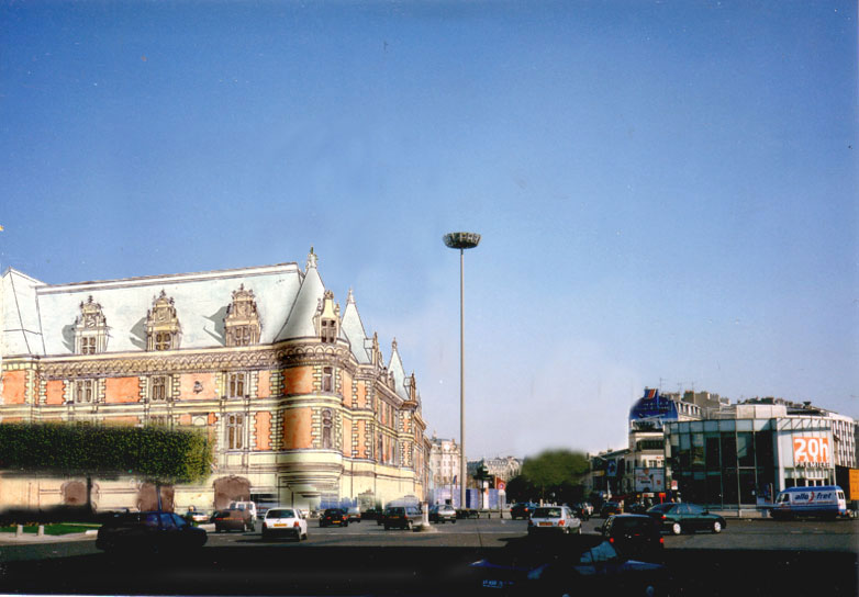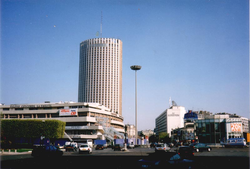 Palais des congrès et hôtel en forme de château Renaissance. L’utilisation sans complexe de tous les styles (éclectisme et historicisme) avec des hauteurs parfois considérables (Chicago ou New-York) n’a rien d’une nouveauté. La tour, c’est à dire la hauteur, est un faux problème. Les tours sont une pollution visuelle parcequ’elles sont modernes, non parcequ’elles sont hautes. La cathédrale de Cologne elle aussi est haute, autant que les tours du Front de Seine (150m). La question qui se pose avec les projets de tours envisagés de nouveau dans certaines zones (Tolbiac, la Chapelle, Masséna), n’est donc pas: « quelle hauteur? », mais quel style ?