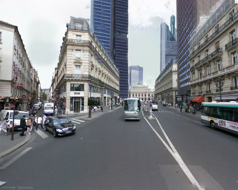 C’est l’idée selon laquelle l’avenue de l’Opéra que vous voyez ci dessus, est un exemple de l’architecture d’il y a 150 ans, la Place des Vosges de celle d’il y a 400 ans, et tout naturellement Perrault, celle de « notre temps ». Donc tout est très rassurant, tout est dans la continuité, et le rejet temporaire du modernisme par les « vieux » (qui vont bientôt crever) est normal, et de tous les temps.